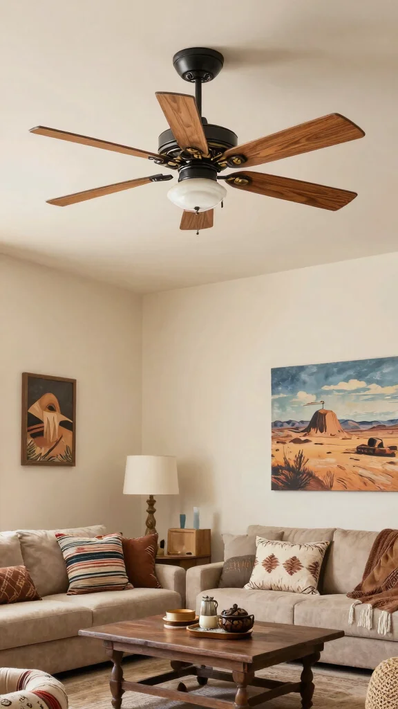 Look for models featuring wooden blades or colorful designs that mirror the desert landscape.