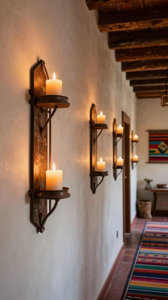 Iron sconces or candle holders can add a dramatic flair to any wall, creating an inviting atmosphere.