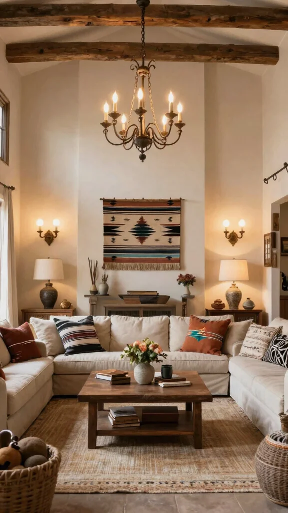 Begin with a cohesive palette that borrows from southwestern home decor—earthy browns and creams with a splash of turquoise or coral—and let desert style lighting be the star. Pick one statement fixture (a large iron chandelier or lantern) and echo its metal or terracotta tones in smaller pieces around the room. Balance rustic lighting ideas with smooth plaster, stone, or wood so nothing fights for attention. Layer textures such as leather, woven rugs, and ceramic accessories to tie the room together. And when in doubt, step back and ask, “Does this feel like southwest lighting fixtures or does it feel cluttered?” Keep it harmonious and intentional.