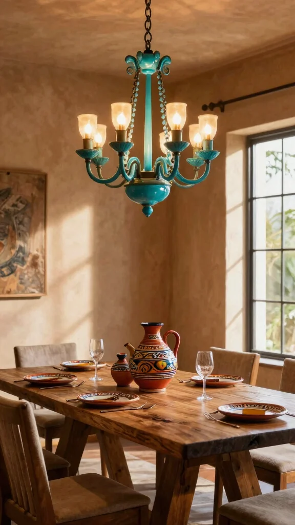 A chandelier adorned with turquoise accents can infuse your space with vibrant energy.