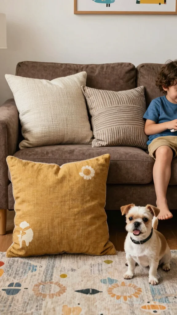– Consider family-friendly fabrics for throw pillows that can withstand everyday wear and tear while still looking chic.
