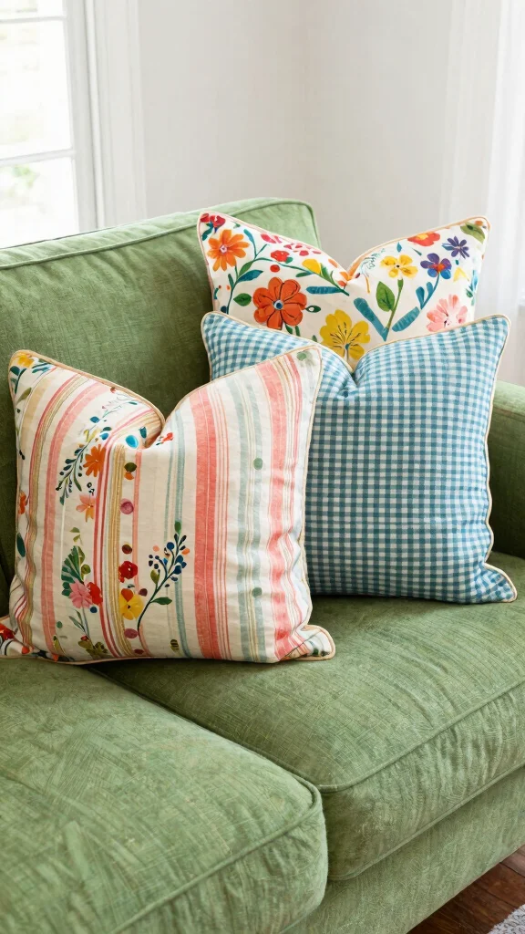 – Combine a floral pillow with a geometric print for contrast