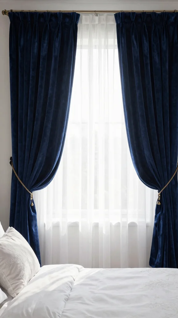 For a truly dramatic effect, consider floor-to-ceiling velvet curtains. This style not only makes your ceilings appear higher but also envelops your space in a luxurious feel. Deep colors create a cozy ambiance, while lighter shades lend a fresh, airy impression, especially in small bedrooms.