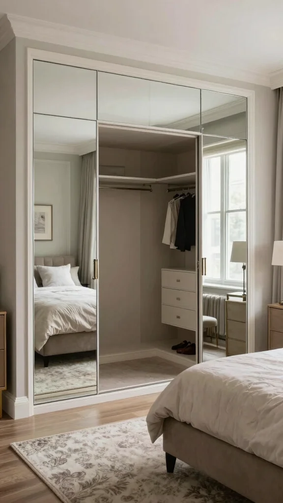 Using mirrored closet doors is a brilliant way to combine functionality with style. They serve a practical purpose while enhancing the perception of light and space in a room. Mirrored closet doors can make a small bedroom feel larger and more open, reflecting light beautifully. Additionally, they double as full-length mirrors for dressing, eliminating the need for extra installations.